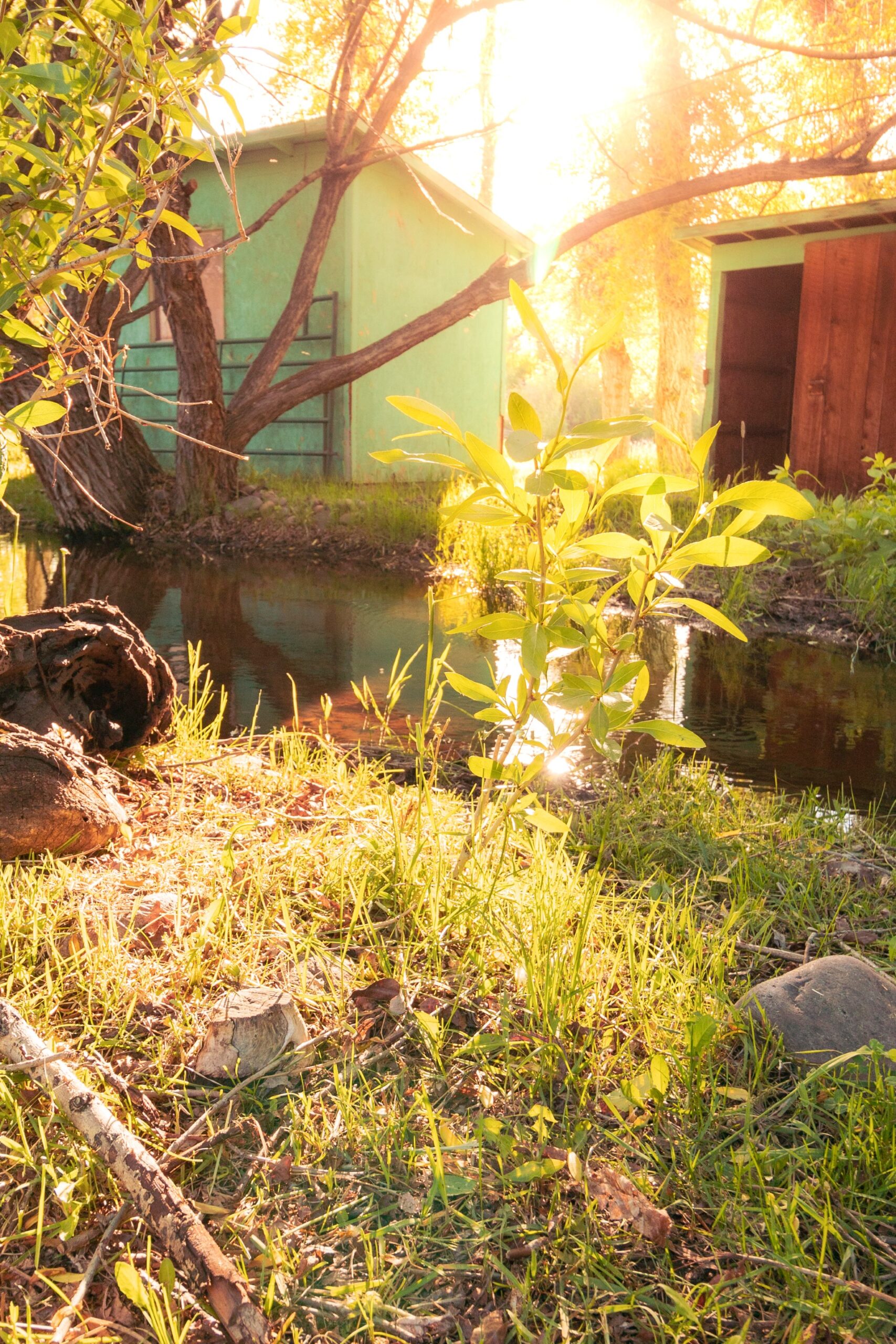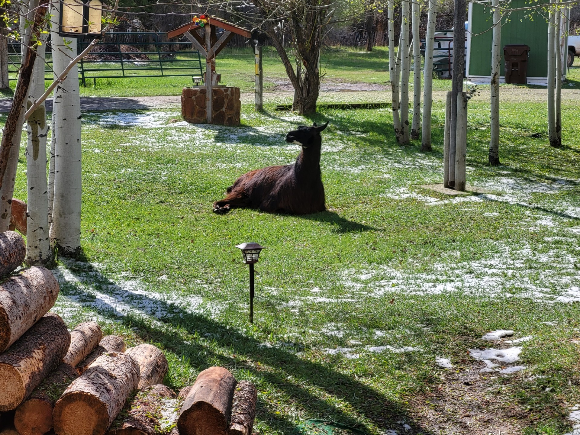 Recharge in our serene exercise and healing room with a daily workout on our max trainer or meditation practice, accompanied by a serene view of the creek, pond, and our majestic lamma.